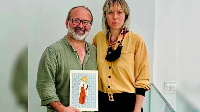 «Ho studiato tanto la figura del Santo – ha dichiarato Elena Scarlata – ma ho voluto rappresentarlo in chiave contemporanea. È una raffigurazione distante dai soliti volti teatrali o pieni di dolori a cui siamo abituati. Sono andata più verso i simboli, soprattutto per informare gli altri sulle virtù di questo santo».