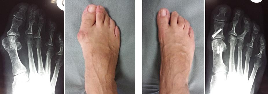 Quando l’approccio conservativo fallisce, o siamo di fronte ad una deformazione importante, si possono provare diversi approcci chirurgici, che variano in base al grado di deformità ed all’esperienza del chirurgo. Nei casi più lievi si potrà tentare la cosiddetta “chirurgia mini-invasiva”, tramite un approccio percutaneo e l’utilizzo di una piccolissima fresa, si eliminerà la sporgenza ossea e si correggerà l’anatomia dell’articolazione. Nei casi più gravi si procederà con la chirurgia tradizionale, in cui sarà necessario praticare delle incisioni cutanee e dei tagli ossei per correggere le deformità, utilizzando poi dei mezzi di sintesi (viti, fili di Kirschner, o placche) per mantenere nella corretta posizione l’alluce e se coinvolte, le altre dita.
