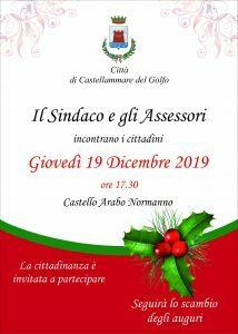 Giovedì 19 dicembre 2019, alle ore 17,30, nella sala conferenza del castello arabo normanno. Il sindaco Nicola Rizzo e gli assessori Giuseppe Cruciata (vice sindaco), Maria Tesè, Enza Ligotti, Vincenzo Abate e Leonardo D’Angelo, parleranno di quanto fatto “ma soprattutto di quello che stiamo facendo e sarà fatto -dicono il sindaco Rizzo e gli assessori-. Non solo bilancio dell’attività governativa già svolta ma anche un momento per presentare la nostra progettualità su vari settori, confrontandoci con la comunità sulle iniziative in itinere.