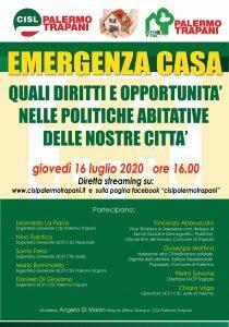L’emergenza casa nei territori di Palermo e Trapani, acuita dalla crisi economica post Covid, che ha aggravato la condizione di povertà nelle nostre città, le politiche abitative dei comuni di Palermo e Trapani, l’edilizia sociale e residenziale pubblica, le politiche le misure nazionali per il settore. Saranno i temi al centro del dibattito in videoconferenza che si svolgerà il prossimo giovedì 16 luglio dalle ore 16 organizzato dalla Cisl Palermo Trapani e dal sindacato degli inquilini, casa e territorio, Sicet Cisl Palermo Trapani.