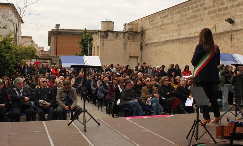 Dopo l’intitolazione, i partecipanti si sono spostati nell’atrio esterno della struttura dove si è svolta la cerimonia istituzionale. Agli interventi delle autorità, è seguita la lettura integrale dei nomi delle vittime innocenti delle mafie, organizzata dal presidio “Gian Giacomo Ciaccio Montalto” dell’associazione “Libera - Associazioni, Nomi e Numeri contro le mafie”, in occasione della XXXI “Giornata della Memoria e dell’Impegno in ricordo delle vittime innocenti delle mafie” che ricorre il 21 marzo, primo giorno di primavera. I nomi sono stati pronunciati dai rappresentanti delle istituzioni e dell’associazionismo locale, accompagnati dal rintocco di una campanella, in un clima di profondo raccoglimento. In conclusione, una toccante esibizione al violoncello ha preceduto la piantumazione di un “albero della legalità” negli spazi esterni del centro sociale.