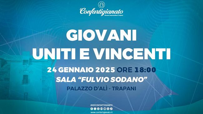 Si terrà domani, 24 gennaio 2025 alle ore 18:00, presso la sala “Fulvio Sodano” di palazzo d'Alì a Trapani, l'evento di Confartigianato Giovani Imprenditori “Giovani Uniti e Vincenti”.L'evento mira a riunire giovani imprenditori del territorio per discutere e condividere esperienze e opportunità di crescita.Diversi i relatori che interverranno nel corso dell'incontro: Giuseppe Sergi, presidente Giovani Imprenditori Confartigianato Trapani, parlerà del ruolo di Confartigianato a supporto delle giovani imprese del territorio.Francesco Nicotra di Finance Project Management, condividerà l'esperienza con lo sportello Informa Giovani e le nuove opportunità del 2025.Emanuele Barbara, assessore alle Politiche Giovanili del Comune di Trapani, discuterà il ruolo delle istituzioni a supporto delle giovani aziende del territorio.Lilly Ferro Fazio di Casa Vinicola Fazio, imprenditrice senior nel settore vitivinicolo, offrirà una testimonianza sulle sfide e le opportunità nel settore.Valentina Graffeo, presidente dell'Associazione Giovani Consulenti del Lavoro Trapani, affronterà il tema dell'orientamento al lavoro per i giovani e illustrerà gli strumenti incentivanti per la loro assunzione.A moderare l'incontro, Roberto Valenti.Durante la serata, inoltre, verranno premiati alcuni giovani imprenditori del territorio che nel 2024 hanno avviato la loro attività distinguendosi maggiormente.«L'evento 'Giovani Uniti e Vincenti' – dice Giuseppe Sergi, presidente Giovani Imprenditori Confartigianato Trapani - è un'iniziativa che rappresenta un punto di riferimento fondamentale per tutti i giovani imprenditori del nostro territorio.
