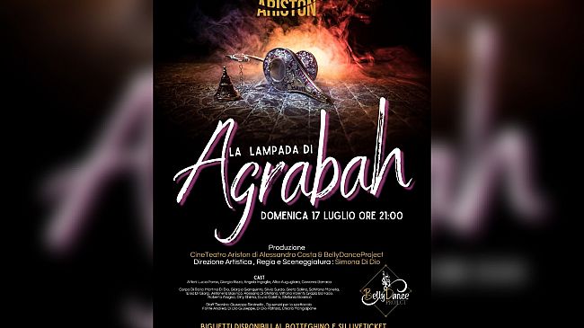 TRAPANI, 15/07/2022 – Andrà in scena domenica, 17 Luglio, alle 21.00 al Cine Teatro Ariston “La lampada di Agrabah”, spettacolo di teatro e danza in 5 atti che raccontano un viaggio alla ricerca del tempo giusto e del momento giusto per cambiare il proprio destino. Un viaggio da fare con i sensi, tra l'utopistica realtà del presente e un passato che consapevoli viviamo ogni giorno.