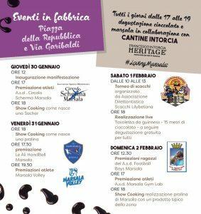 La manifestazione - che verrà inaugurata dagli Organizzatori, con la partecipazione dell'Amministrazione Di Girolamo, alle ore 12:00 di Giovedì 30 Gennaio - avrà come sedi Piazza della Repubblica e Via Garibaldi, dove verranno allestiti gli stand della Mostra Mercato e si svilupperanno le coinvolgenti attività della Fabbrica di Cioccolato.    Il programma degli appuntamenti è online sul sito dedicato www.chocomoments.it e sul portale turistico istituzionale https://www.turismocomunemarsala.com/choco-moments-marsala-2020.html