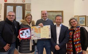 Ringraziamo quindi la Sarpiz e, per la loro generosità, le aziende il cui contributo testimonia quanto abbiano a cuore la salute della comunità”. Lo ha detto l’assessore all’Innovazione Vincenzo Giacalone, nel corso della cerimonia svoltasi ieri pomeriggio nella sala La Bruna del Collegio dei Gesuiti per la consegna di due defibrillatori semi automatici e per la presentazione del progetto “Salva Una Vita Città Cardio protetta”. Il contributo delle aziende consentirà la dotazione di ulteriori defibrillatori. Nelle foto, l’assessore Giacalone con i rappresentanti della Croce Rossa e rappresentanti delle aziende che hanno partecipato: Fabrizio Car- Carrozzeria Frazzetta- Punto Casa- Farmacia Calafarma- Superstore Decò- Laboratorio Analisi Salvo- Supermercati Decò- Studio Dentistico De Pasquale- Farmacia Spanò- Panificio Scaminaci- CRS Ricambi- Farmacia Imam- Vita Nuova Associazione- Gioielleria Giuseppina Mirabile- Terzomillennio s.r.l- Pasticceria I Dolci di Serena- Studio Odontoiatrico Sanfilippo Antonello- Bicenter Fisioterapia e Chinesiologia- Studio Odontoiatrico Alessandro Giacalone- Pizzeria da Joseph- Radius Medical Center.
