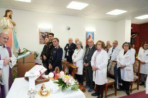Ma, con l’ironia che lo contraddistingue, si concede anche il tempo di scherzare e chiacchierare con le persone che incontra, perché la gioia solleva i cuori come la preghiera. Accompagnato dal cappellano don Antonino Favata per scale e corridoi e scortato da un gruppo di volontari, il Vescovo ha percorso l’Ospedale in lungo e in largo, accolto da medici e personale sanitario, prima di giungere in Cappella per la Celebrazione Eucaristica, che è il momento centrale della giornata. Il 18 dicembre ricorre anche l’anniversario (quest’anno il secondo) della consacrazione dell’Altare della Cappella “Gesù confido in Te”, pietra che diventa il luogo sacro su cui offrire le preghiere, le suppliche e i ringraziamenti di chi transita in ospedale.