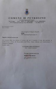 È sufficiente a tal fine rendere pubblica la nota di risposta del Dirigente dell’Ufficio Comunale competente alla sig.ra Pellegrino in data 12 dicembre 2019, nella quale si evince che TUTTI gli Amministratori ed i Consiglieri Comunali sono in regola con il pagamento dei tributi locali. In conclusione, rispediamo al mittente le accuse infondate, invitandola a smetterla di raccontare favole e impegnarsi finalmente su cose serie. Allegati