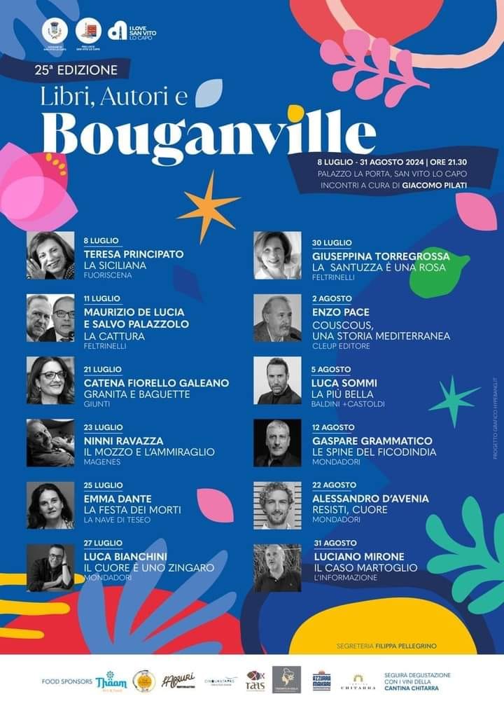 Ai nastri di partenza la 25^ edizione di “Libri autori e bouganville”, la rassegna letteraria organizzata dal Comune di San Vito Lo Capo e dalla Pro Loco, curata dallo scrittore e giornalista Giacomo Pilati.