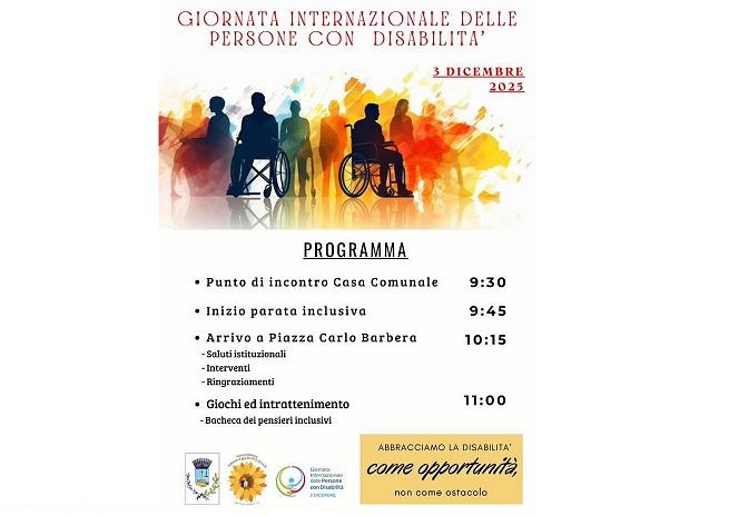 “Siamo lieti di invitarvi alla 2^ edizione della Giornata Internazionale delle Persone con Disabilità, che nasce dal desiderio di stare insieme, di ascoltarci e di riconoscere il valore unico di ogni persona”. Si legge nella pagina social del Comune di San Vito Lo Capo, a corredo della locandina dell’evento organizzato per mercoledì 3 dicembre.