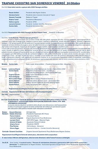 La Rassegna del Mare, avviata oggi ad Agrigento per proseguire domani a Trapani, si concluderà domenica 26 ottobre, con la presentazione del documento finale con proposte operative per una gestione sostenibile delle risorse marine e lo sviluppo integrato della Blue Economy.